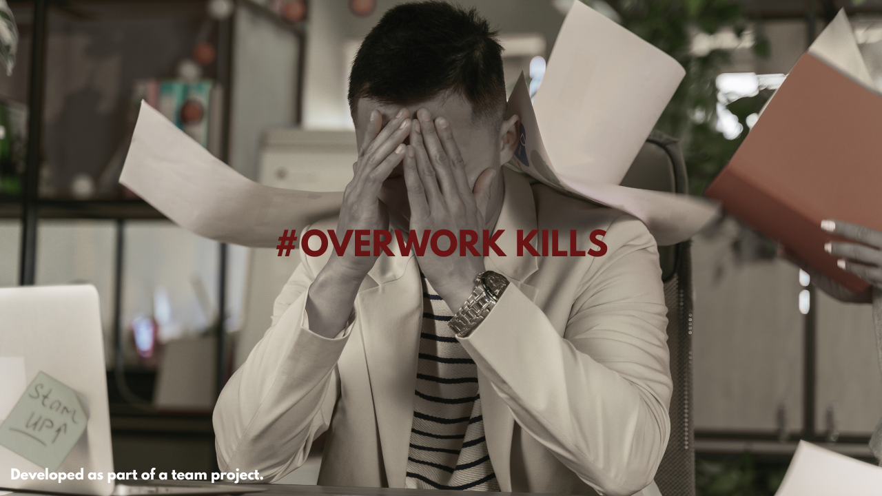 A PR campaign proposal raising awareness about the global crisis of overwork, inspired by Japan’s karoshi phenomenon, aimed at engaging Gen Z and millennials online.